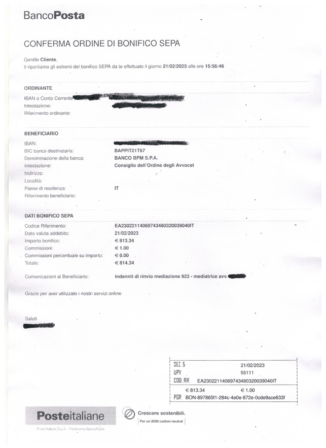 La storia che stiamo narrando ha fatto registrare altre novità. Il nostro amico non aveva mai pensato di sollevare obiezioni sul patrimonio ereditato insieme alla sorella (ridotto a ben poca cosa grazie all’azione dei “benefattori” andati, alla fine del 2019, in soccorso dell’anziana madre). La mediazione sulla divisione dell’eredità è stata richiesta dall’AdS della sorella e adesso, per una “dimenticanza” dello stesso avvocato, è finita in stallo. La procedura citata prevede degli incontri per arrivare all’accordo. Nel secondo di questi incontri i due fratelli, secondo il valore della presunta “controversia” ereditaria, valore fissato da avvocati, hanno dovuto pagare ciascuno 813,34 euro.