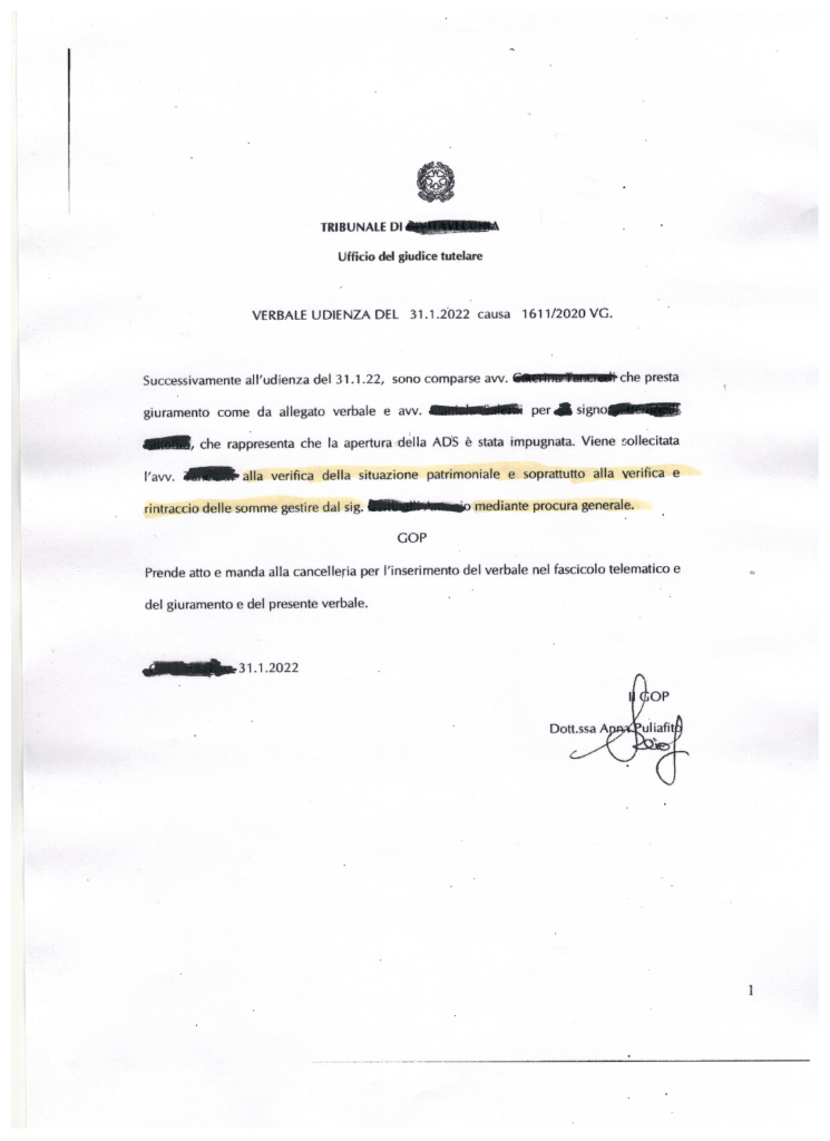 Tale “estensione” d’incarico, e non già la nomina di data antecedente (all’epoca reclamata in Corte d’Appello), è stata contestata, attraverso un reclamo “dilatorio” in tribunale, nei termini previsti (8 febbraio 2022). (riportato sulle puntate n. 139 ter e 139 quater)