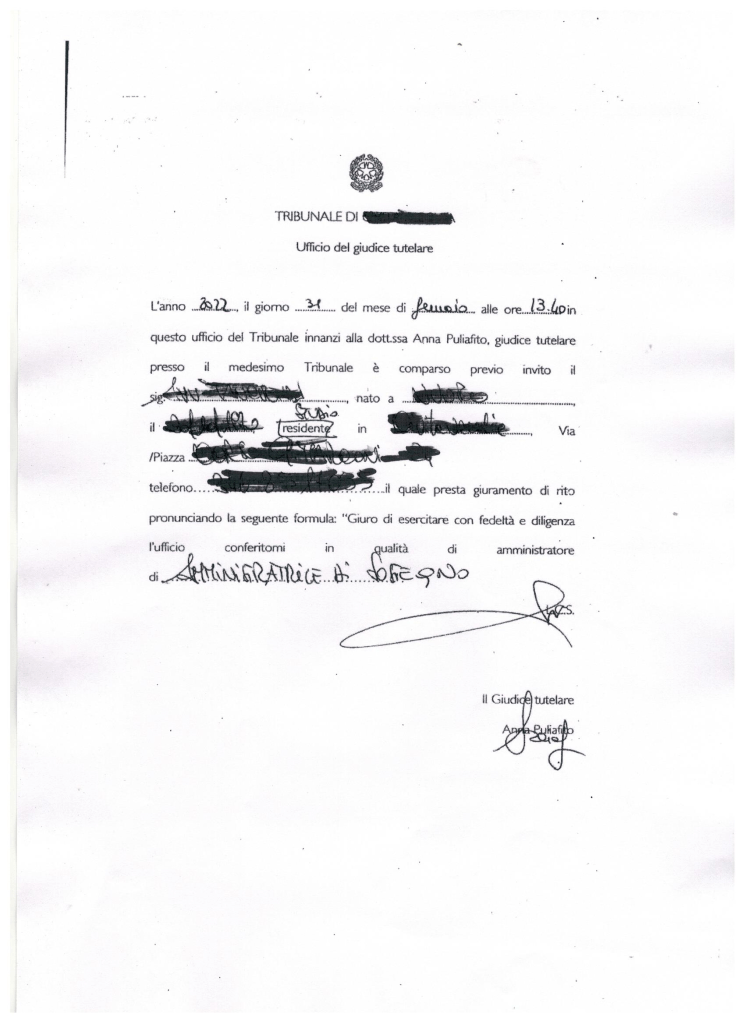 Il secondo (riportato sulla puntata n. 139 bis) riguarda il giuramento dell’A.d.S. esogeno, con “ampliamento” del relativo incarico a cura del G.T., datato 31 gennaio 2022.