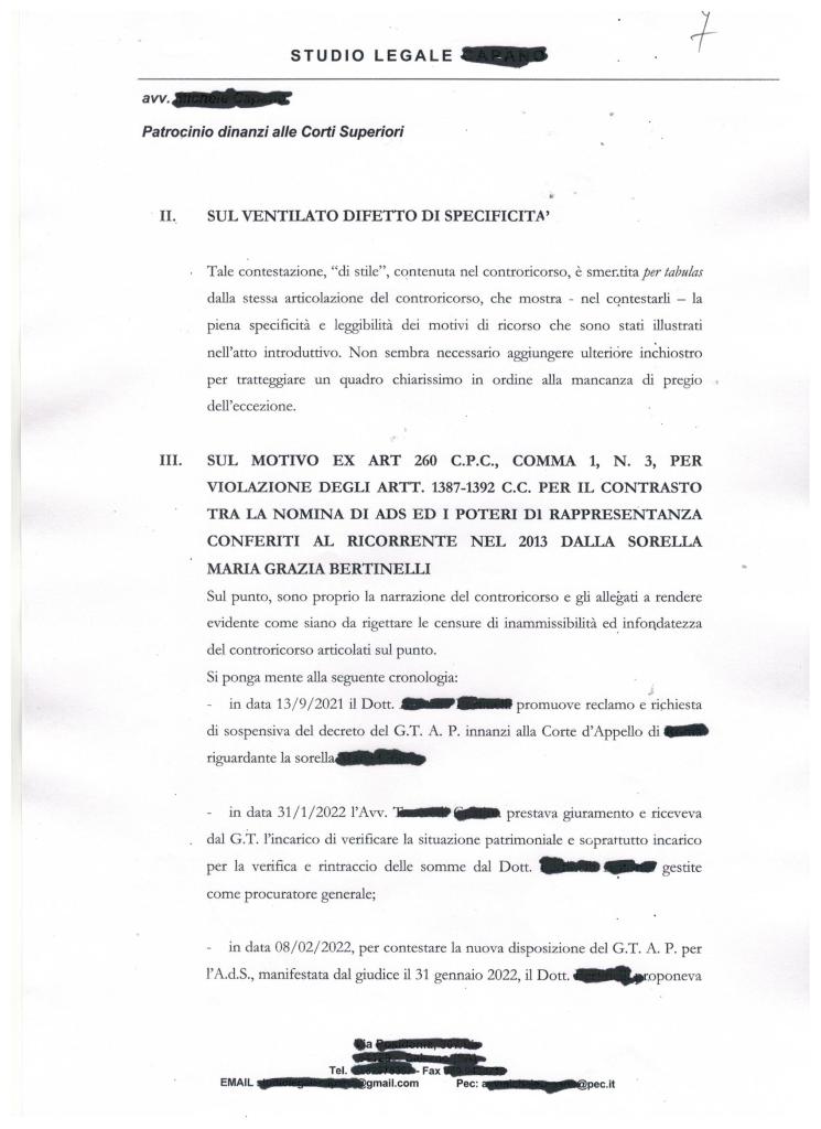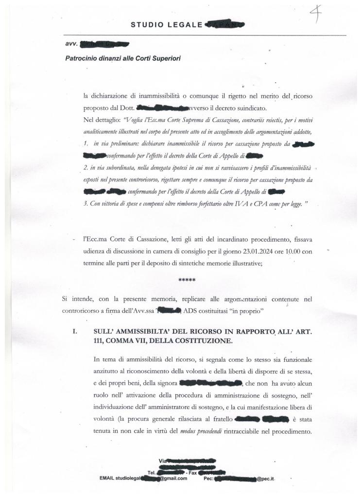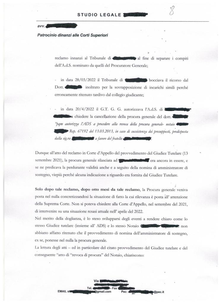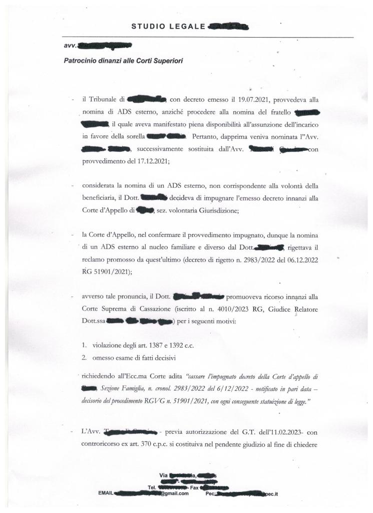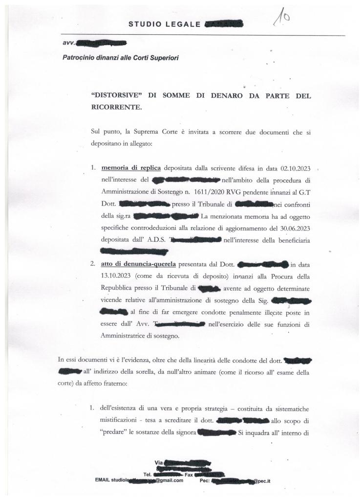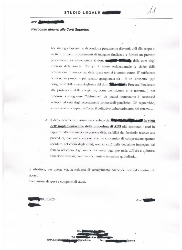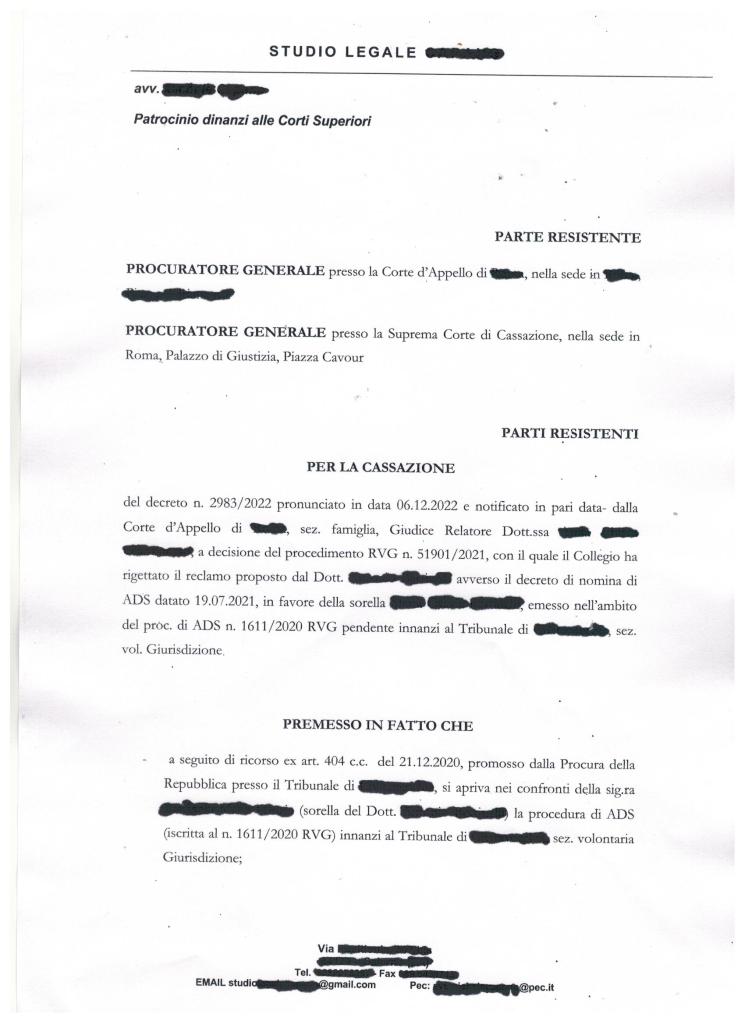 Ed eccoci alla pubblicazione del terzo documento pertinente al ricorso in Cassazione. Sul percorso alle spalle del protagonista della storia da incubo, che stiamo raccontando fin dalle sue battute iniziali, sono restate un bel po’ di macerie: decessi, gravi malattie, considerevoli perdite patrimoniali, mancata riscossione della sua quota ereditaria, azioni intenzionalmente fraudolente, smarrimento di una ventina di documenti cruciali nei fascicoli del tribunale, sgradevoli esiti di (furti?) nell’abitazione materna, spoliazione dell’anziana genitrice con annessa appropriazione indebita a detrimento delle sue pensioni mensili, sparizione di cari ricordi familiari, calunnie, diffamazioni, pesanti parole in libertà di rappresentanti istituzionali ed altri rimarchevoli danni. La Corte di Cassazione ha il compito di garantire l’omogenea applicazione ed interpretazione delle leggi. A volte, oltre alla funzione nomofilattica, che è quella sua convenzionale, sembra non disdegnare l’analisi onnicomprensiva dei fatti verificatisi in parallelo e quindi, se e quando vuole, entra nel merito del contenzioso. Come giudice di legittimità di ultima istanza è l’ultima spiaggia per il cittadino che spera di vedere correggere gli errori, le omissioni e gli abusi di cui è stato vittima nel corso delle precedenti procedure giudiziarie. In qualche maniera la Suprema Corte dovrebbe essere uno dei maggiori presidi dell’establishment a difesa sostanziale della credibilità, del prestigio e dell’autorevolezza dell’intero ordine giudiziario. La memoria posta di seguito, tra l’altro, ribadisce le illegittimità riscontrate nel primo e nel secondo grado del giudizio, contestualmente fornisce alla Corte una panoramica sulla situazione giurisdizionale odierna del ricorrente.