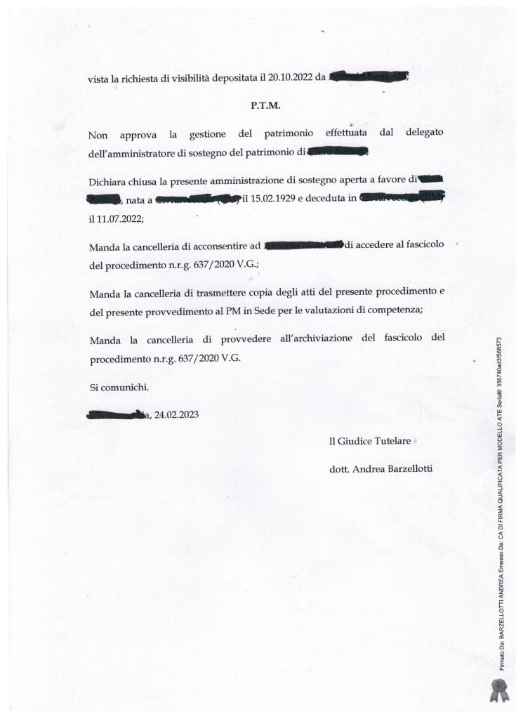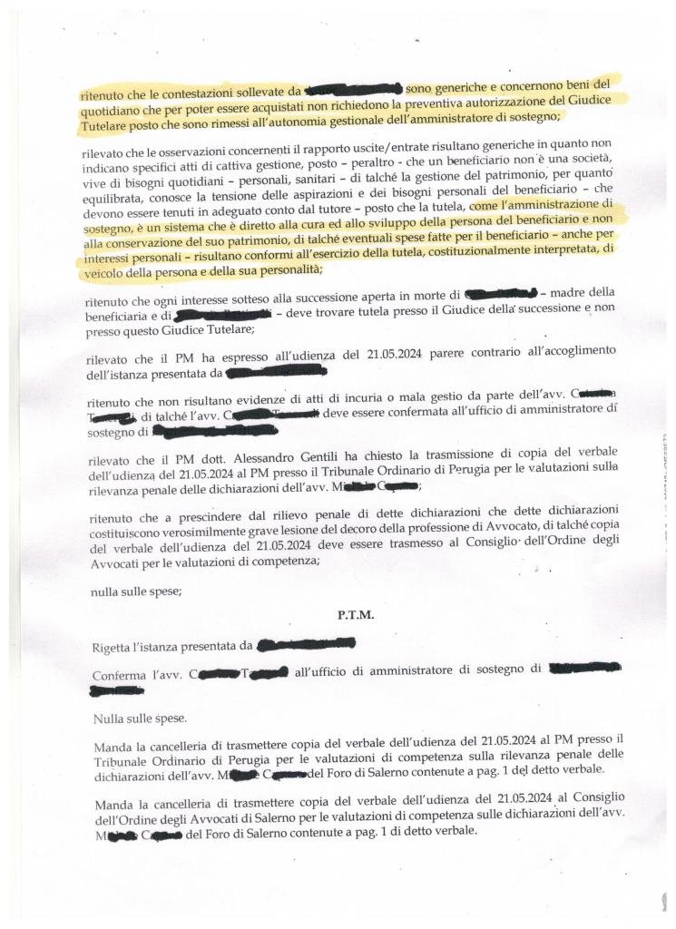 Prima di allegare la copia del decreto del G.T. del 11/6/2024 facciamo alcune considerazioni.