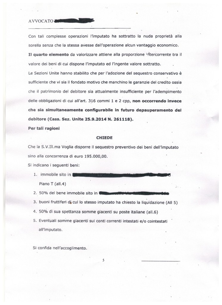 Rileviamo che il documento ultimamente acquisito è ricco di asserzioni non rispondenti al vero. Ecco di seguito quanto scrive l’avvocato assoldato dall’AdS della sorella del nostro amico per ottenere il sequestro conservativo di alcuni suoi beni: