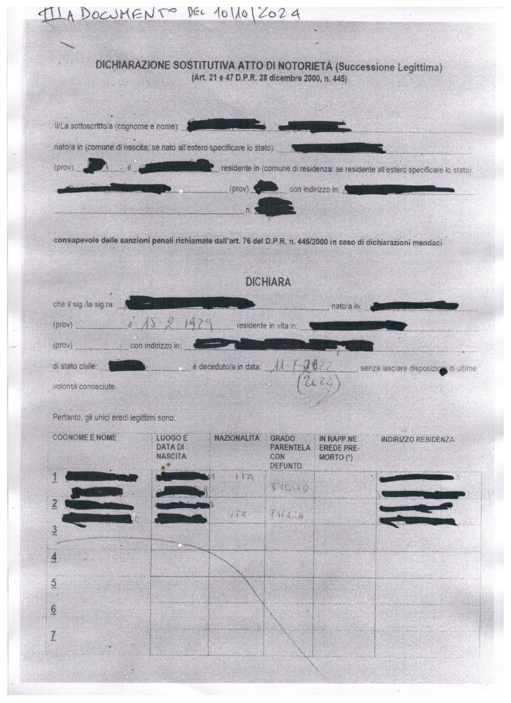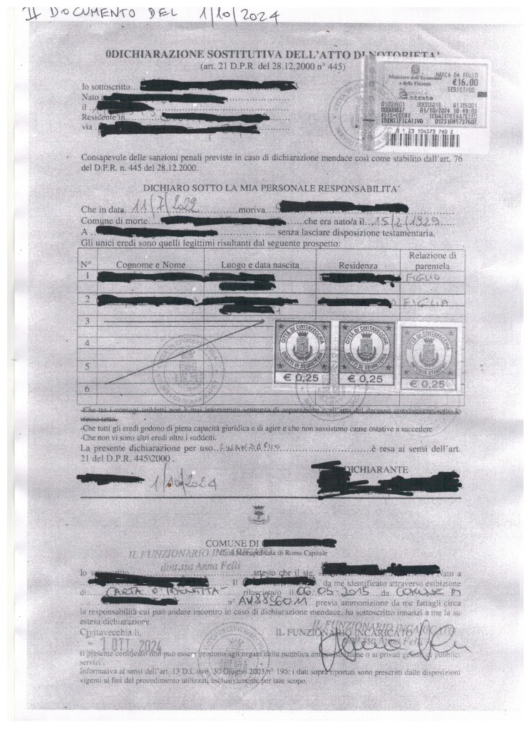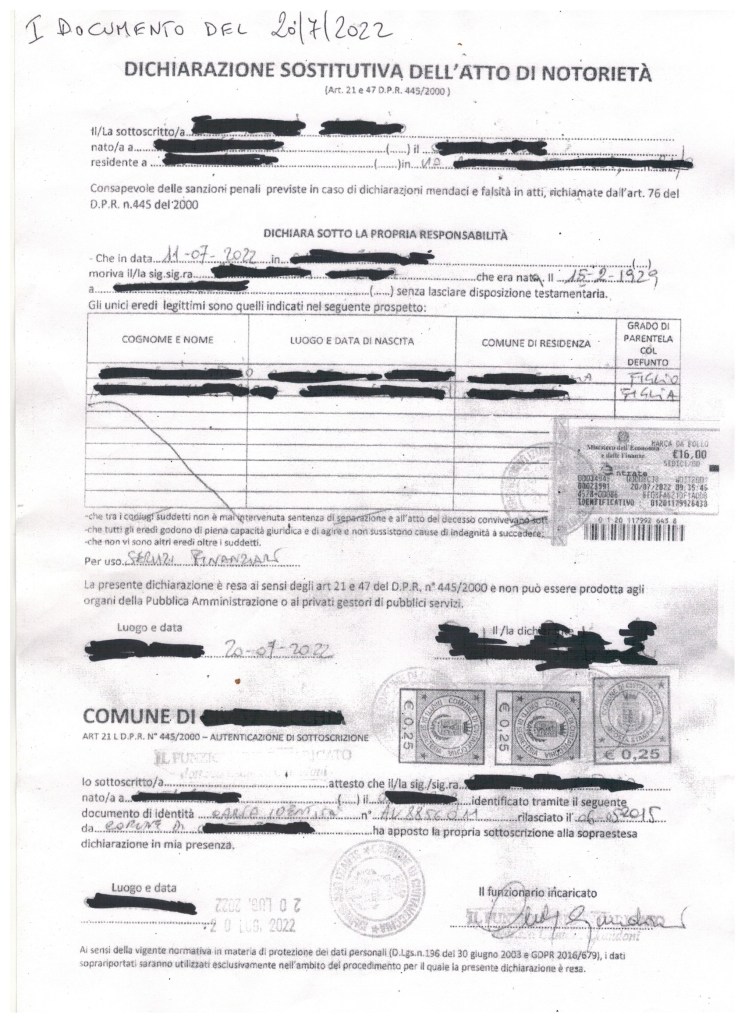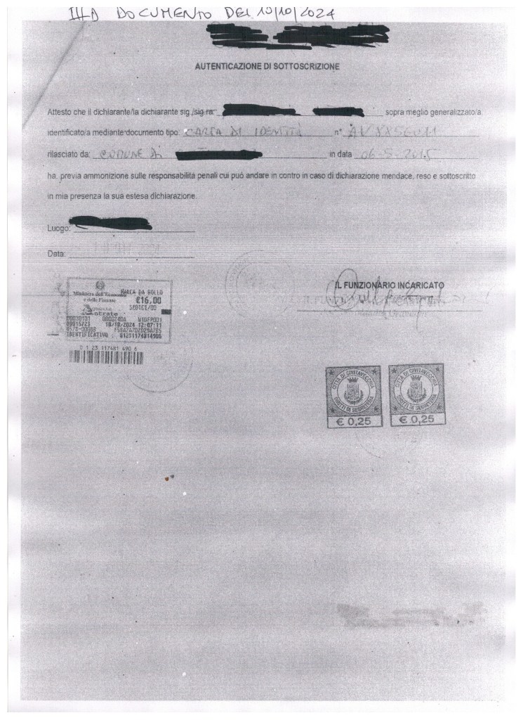 Ecco i tre documenti citati in ordine di emissione. Il terzo si compone di 4 pagine: