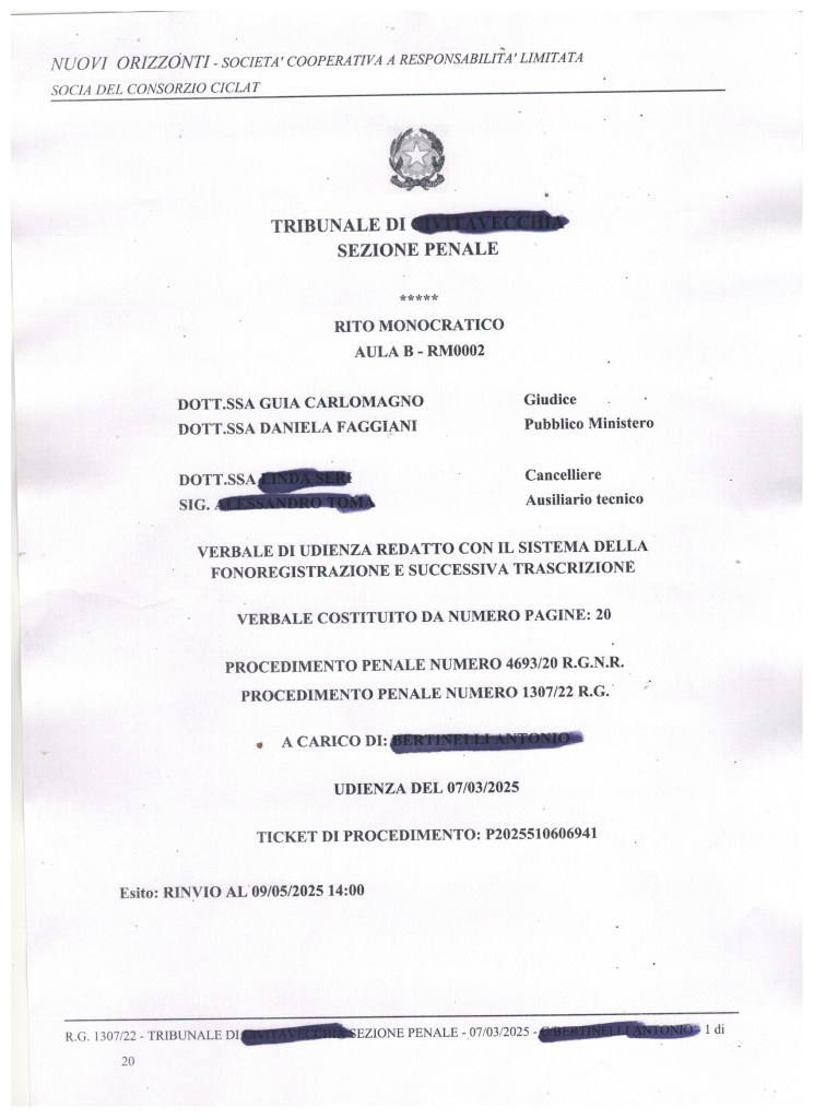 Mettiamo di seguito la copia del verbale d’udienza redatto per la circostanza: